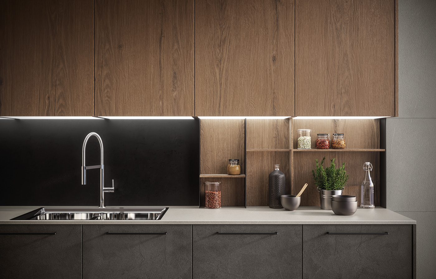 以实木橱柜做为公司的核心产品,积极打造先进的智能厨房产品中心。